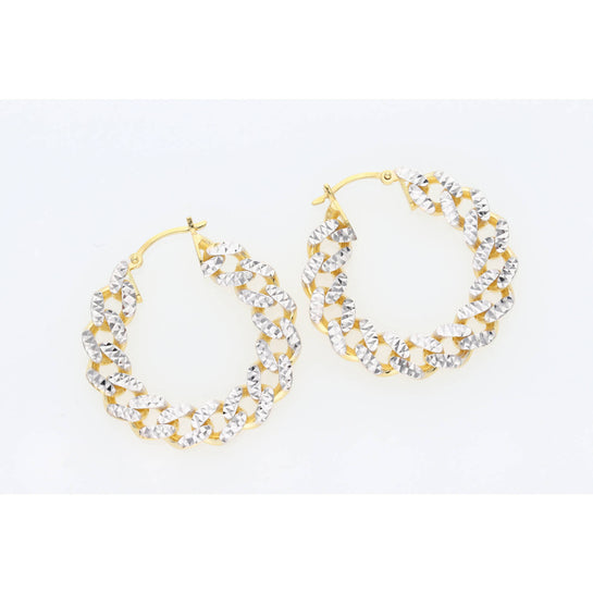 10 Karat Gold 2 Tone Cuban Link Earrings W:5.8