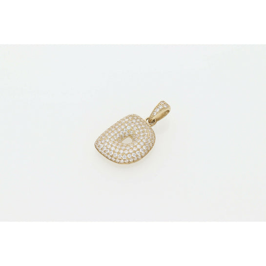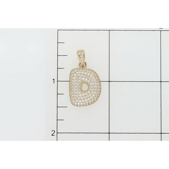 10 Karat Gold Cz Bubble Letter "D" Charm W:3.6