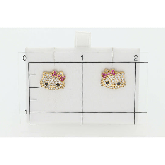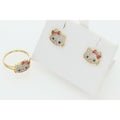 10 Karat Gold & Cz Kitty Set Ring + Earrings W: 3.8