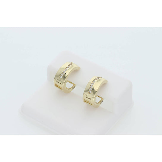10 Karat Gold Cz Small Wide Hoops Earring W:3.8
