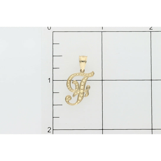 Letter "F" Charm With An Approximate Total Gram Weight Of 1.0. The Charm Measurement Is 22.0 Mm In Width And A Length Of 12.6 Mm.