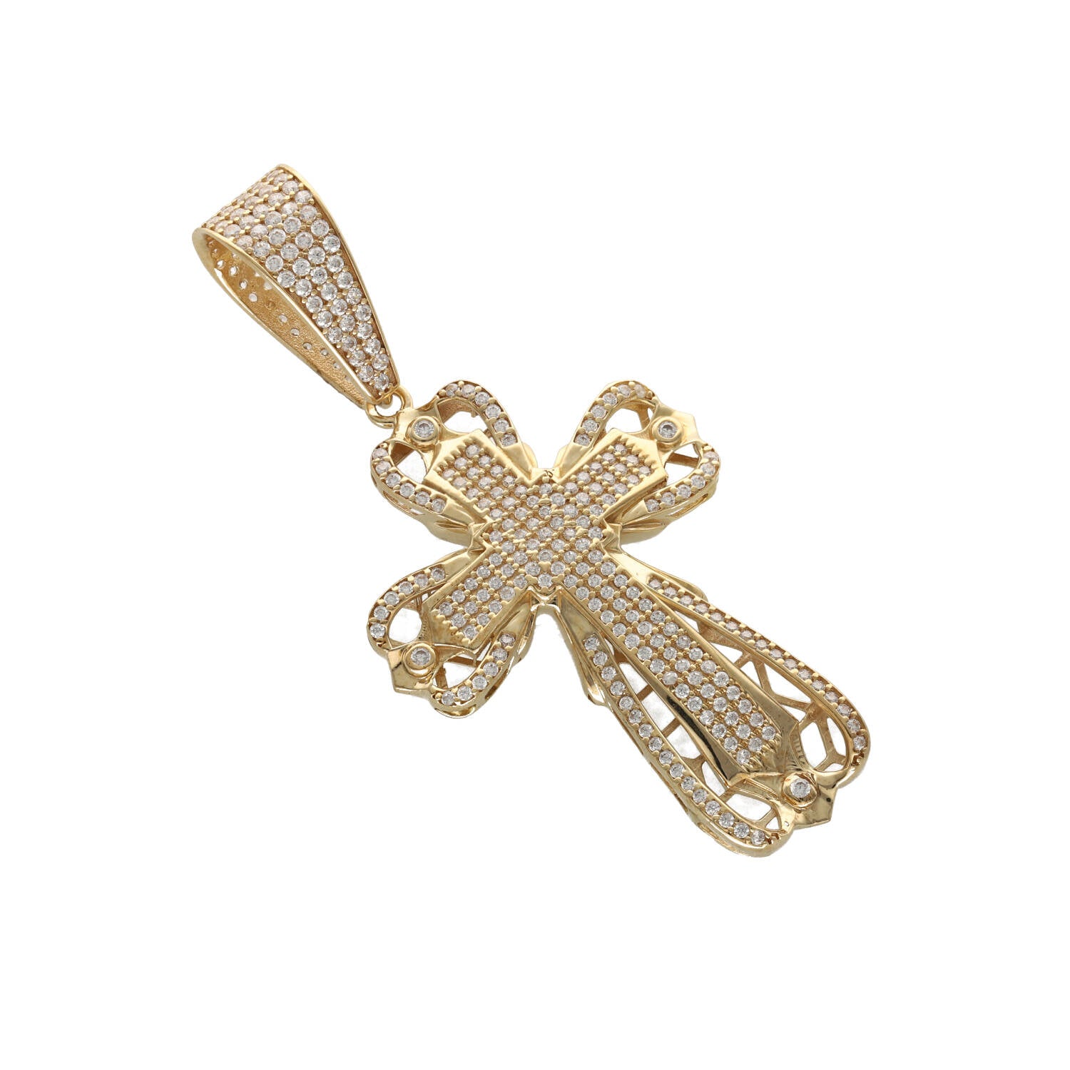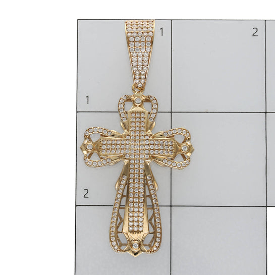 10K Yellow Gold Cross Charm with CZ Design - Premium Religious Jewelry