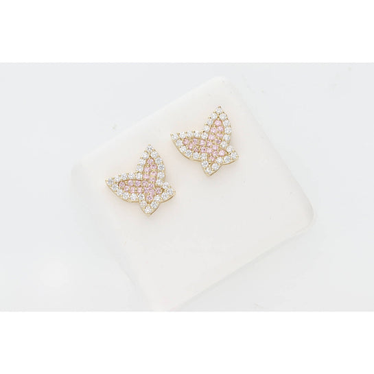 10K Gold & CZ Pink Butterfly Earr W:2.4