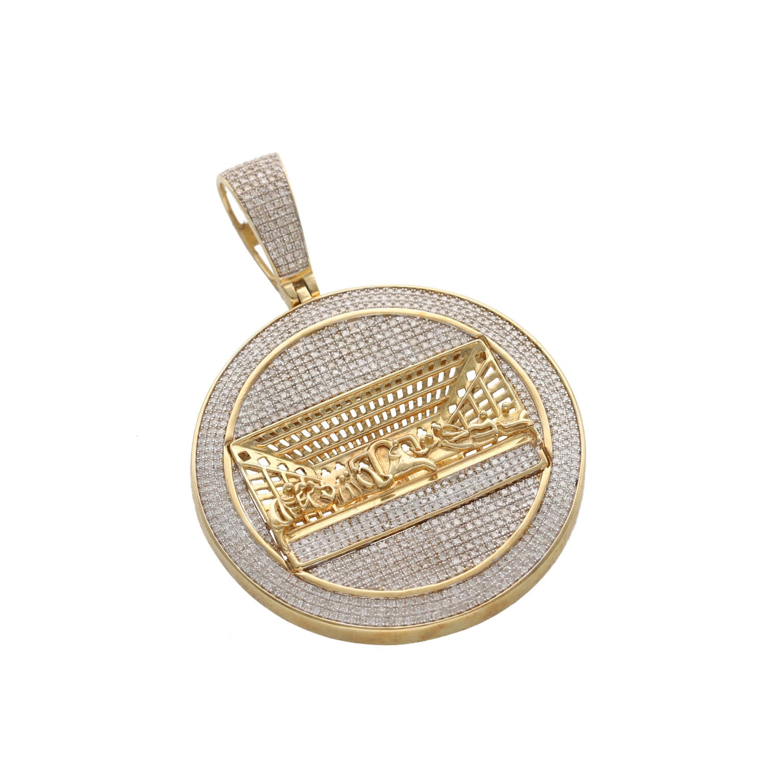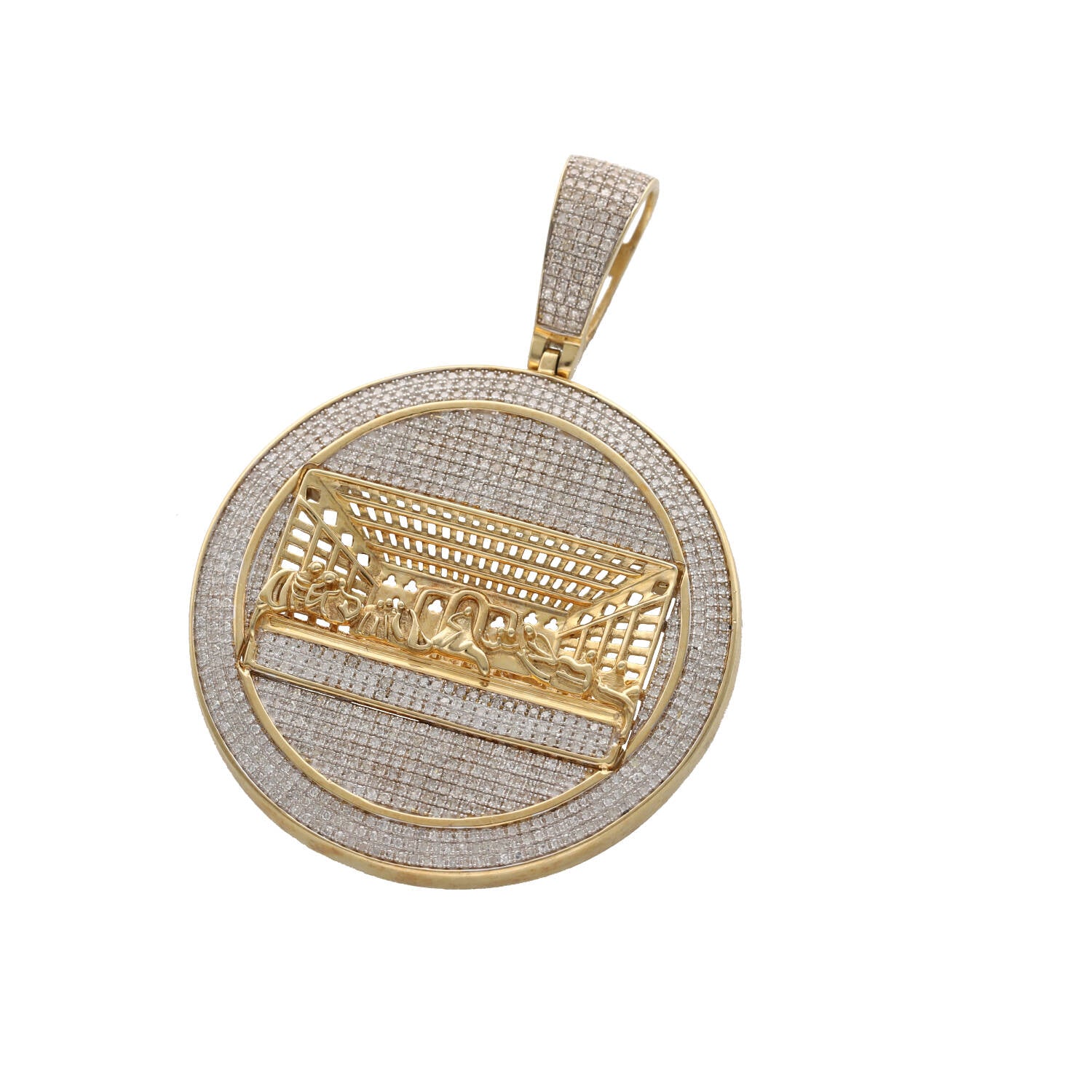 This stunning 10K yellow gold Last Supper pendant captures the sacred moment of Jesus Christ's final meal with his disciples. Meticulously crafted with 4.25 carats of natural diamonds, this religious charm combines spiritual significance with luxurious fine jewelry craftsmanship.