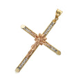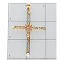 This magnificent CZ crucifix pendant beautifully blends traditional faith symbolism with modern two-tone styling. The combination of rose and yellow gold creates visual warmth and dimension that's both contemporary and timeless, perfect for those who appreciate unique religious jewelry.