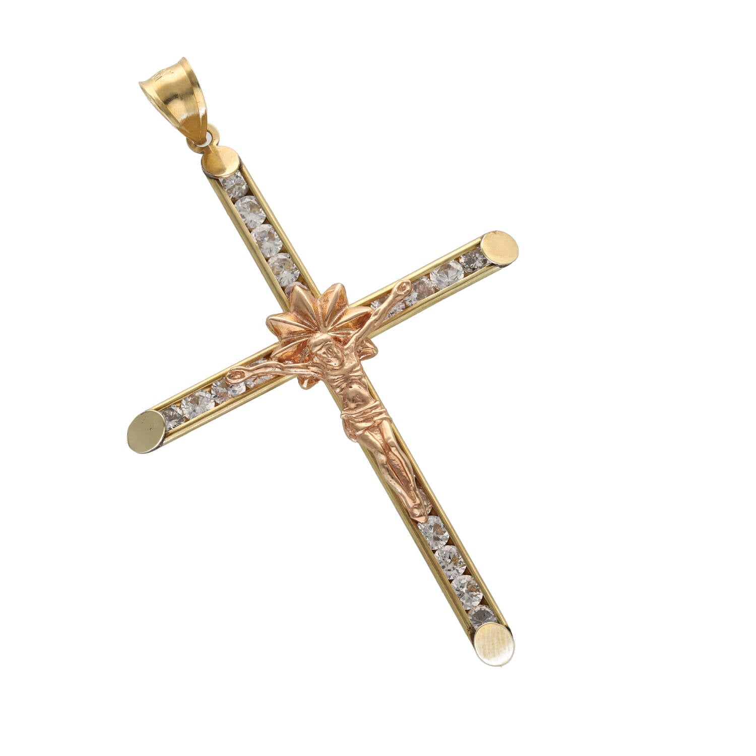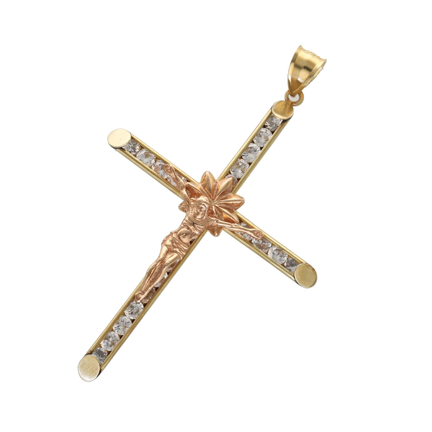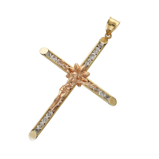 10K Rose & Yellow Gold Jesus Crucifix Cross with CZ βοΈ