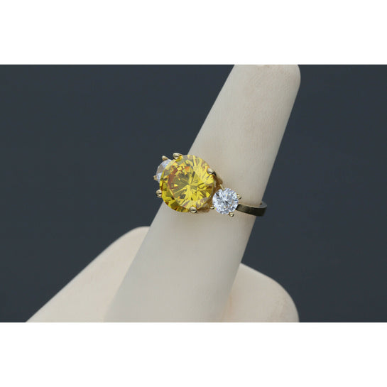 Stunning 10K Yellow Gold Zircon Citrine Ring with Diamond-Like Zircon Accents