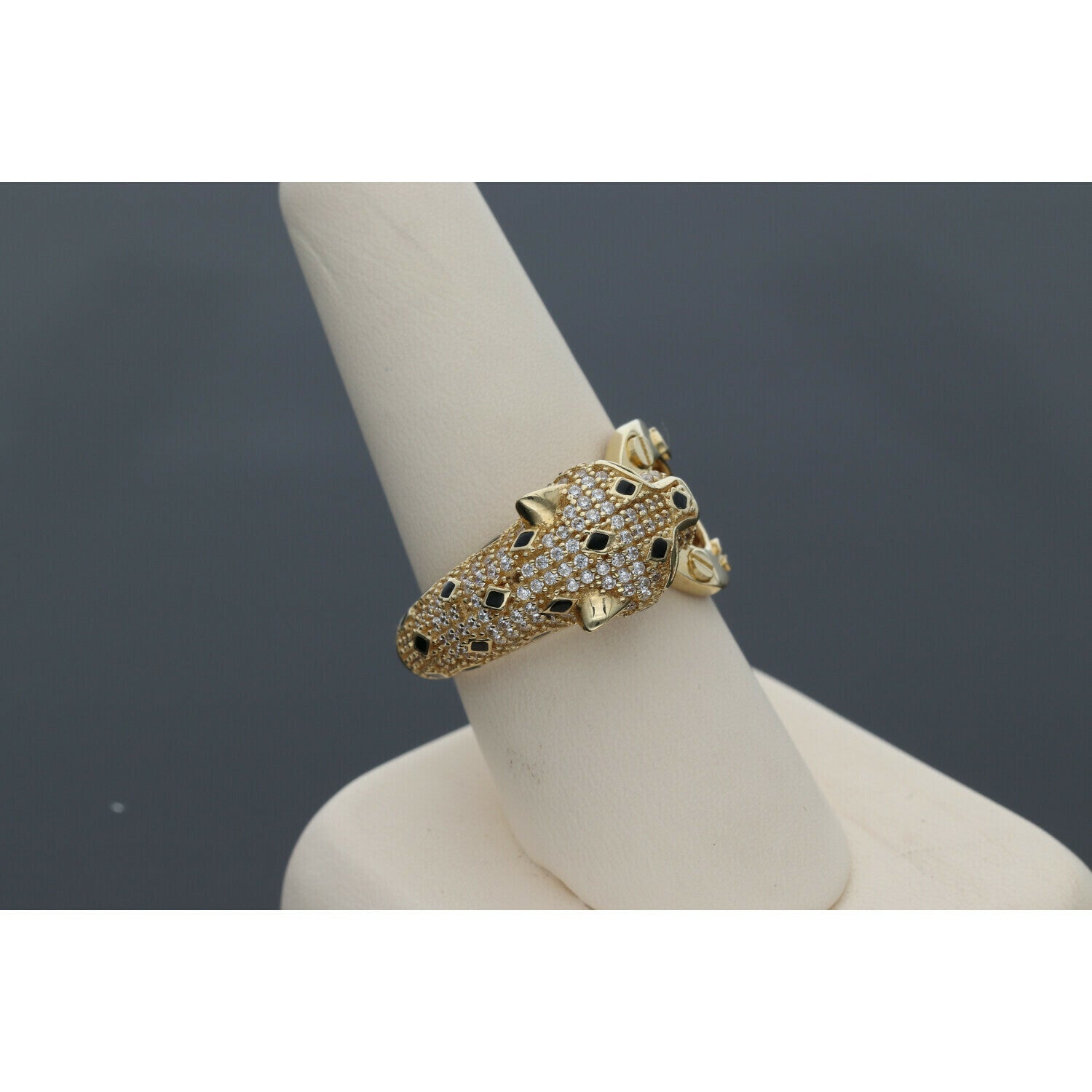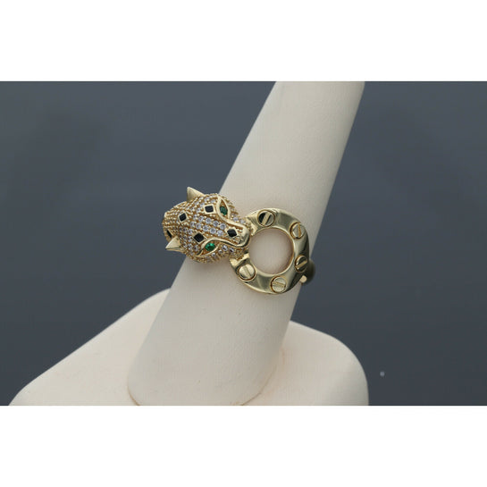 14 Karat Gold Ring with the shape of a Jaguar and Zirconium stones around it.