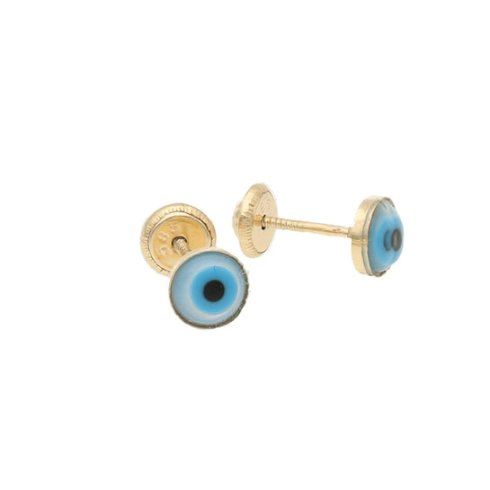 14 Karat Gold Evil Eye Screw Back Earrings