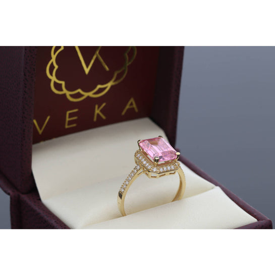 Enjoy the beauty of pink gemstones with Veka Jewelry's morganite-style ring - where luxury meets affordability.