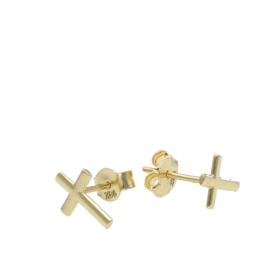 14 Karat Gold Stud Cross Earrings