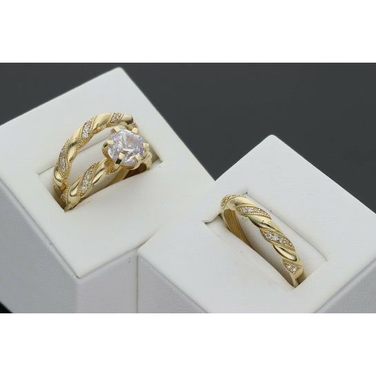 14 Karat Gold TRIO Wedding Ring with Gem stone zirconia and zirconia stones around it.