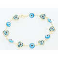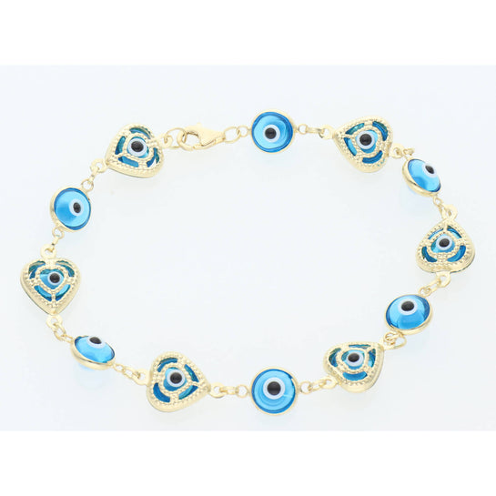 14K G Blue, Heart & Eye Bracelet 3.2x7"w6.2