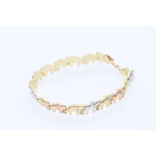 14K Gold 3 Tone Elephant Bracelet 8x7" W:6.8