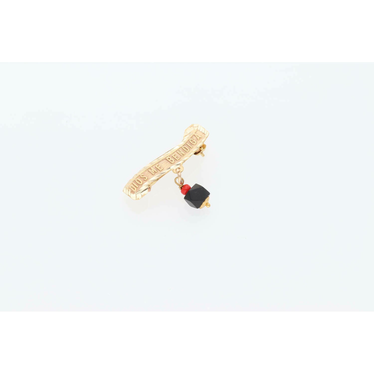 14K Gold Azabache Dios Me Bendiga Pin Charm - Protection Jewelry | Real Yellow Gold