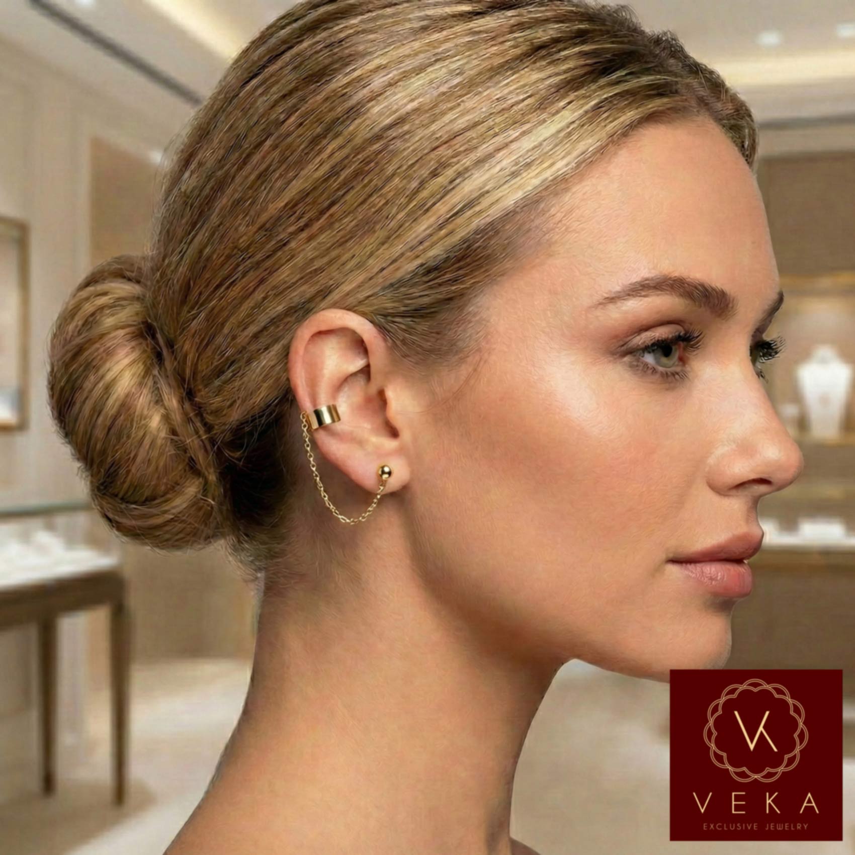 It creates a stunning draped effect from your helix to your lobe. The best part? You only need one standard lobe piercing. The upper cuff gently hugs your cartilage without requiring a second piercing, making it the perfect way to experiment with a "curated ear" look.