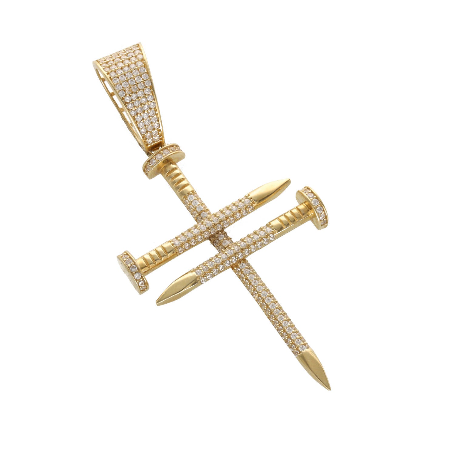 14K Gold Nail Cross Charm with CZ Stones - Yellow Gold βοΈ