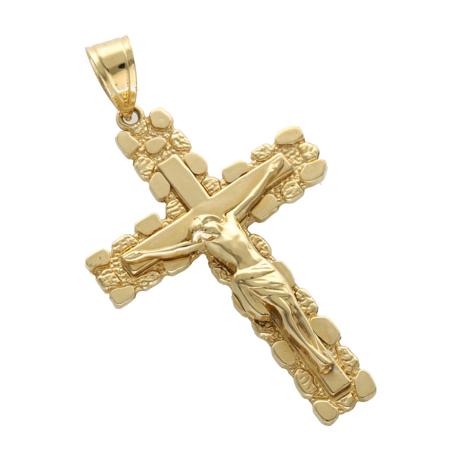 14K Yellow Gold Nugget Jesus Christ Crucifix Pendant βοΈ