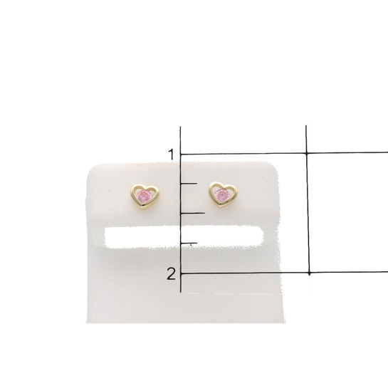 14k Gold & pink Cz Heart Stud Earr W:0.9