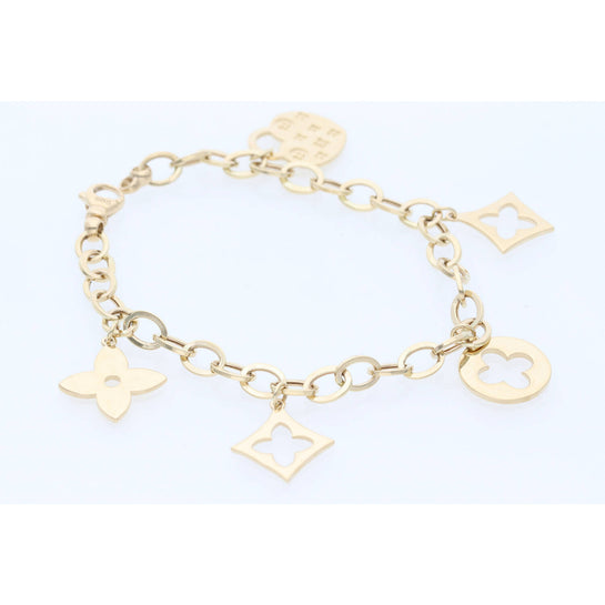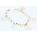 14K Gold Rolo Chain Bracelet with Love Charms - Women's Fancy Charm Bracelet