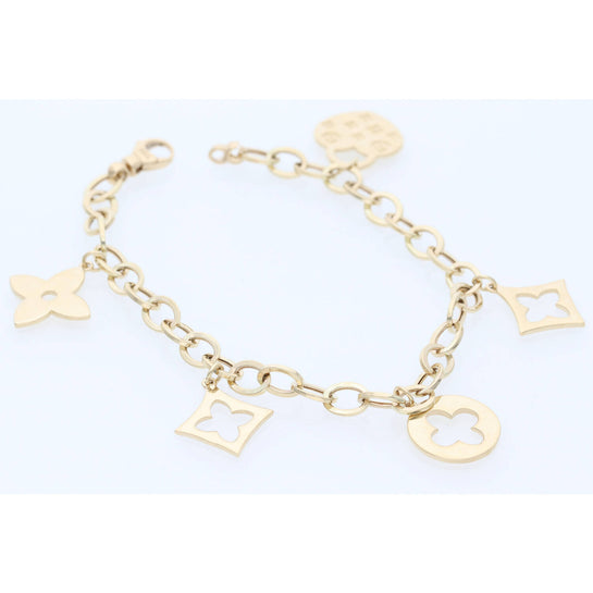 Elegant 14K Gold Rolo Chain Bracelet with Fancy Love Charms