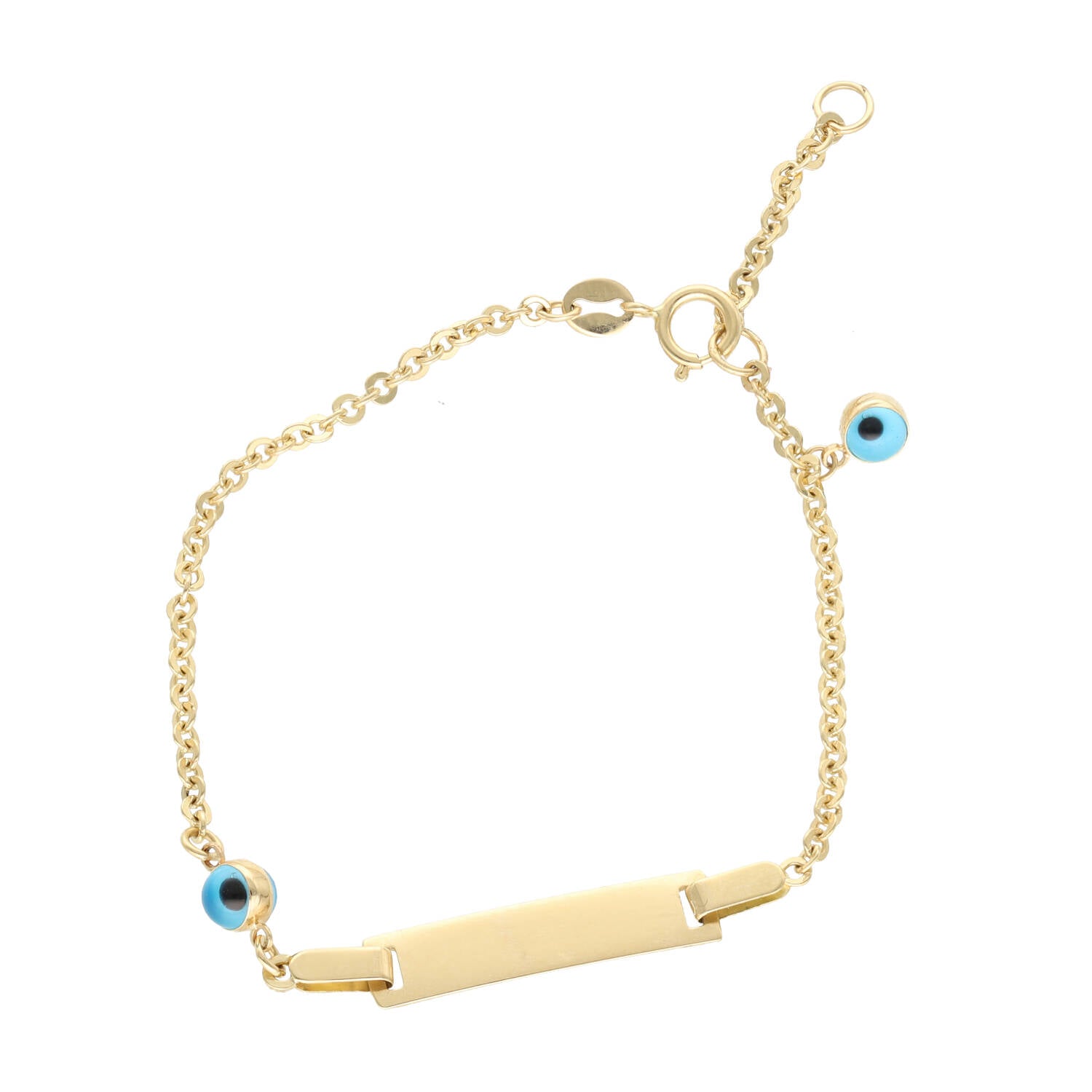 14K Gold Rolo Evil Eye Baby ID Bracelet - Children's Protection Jewelry