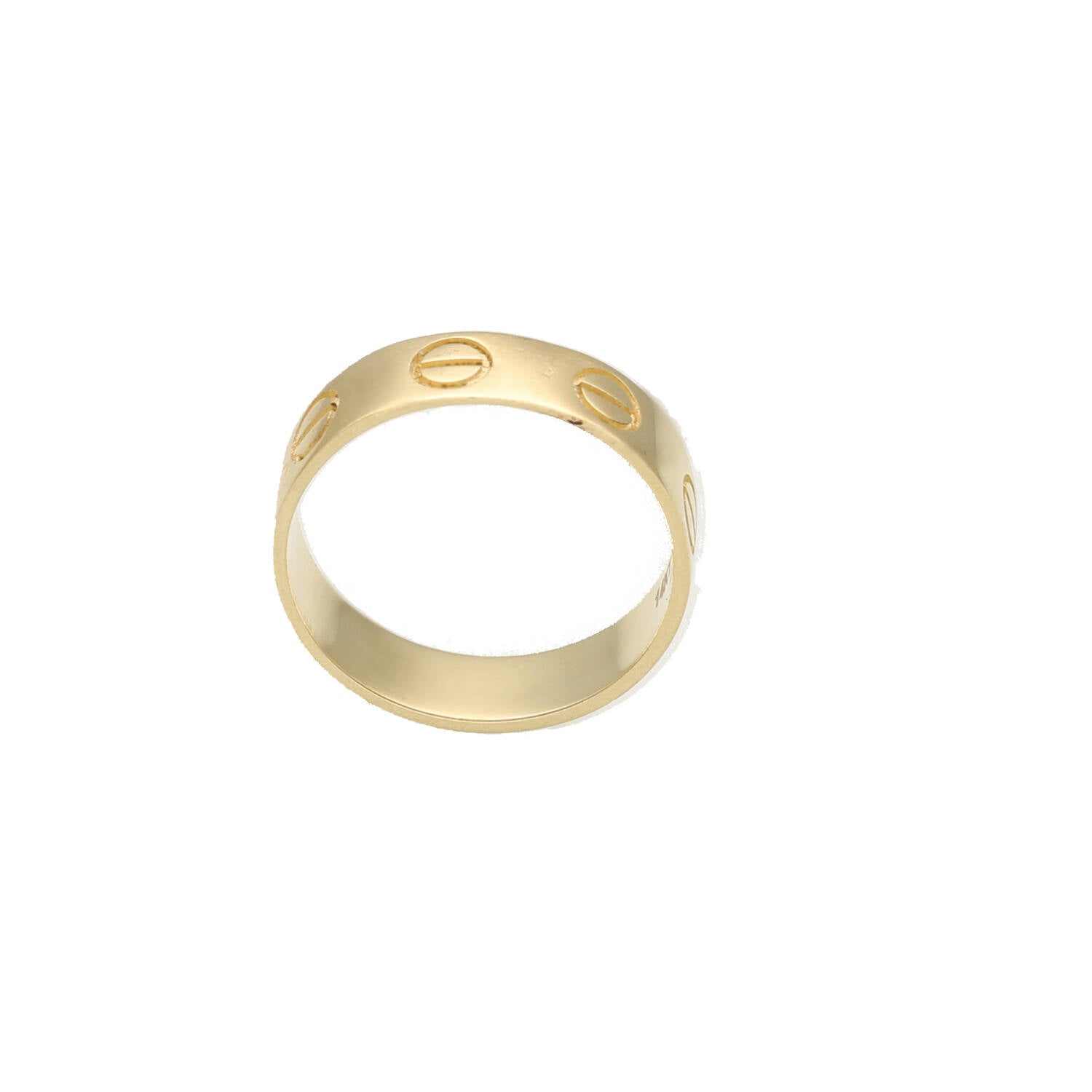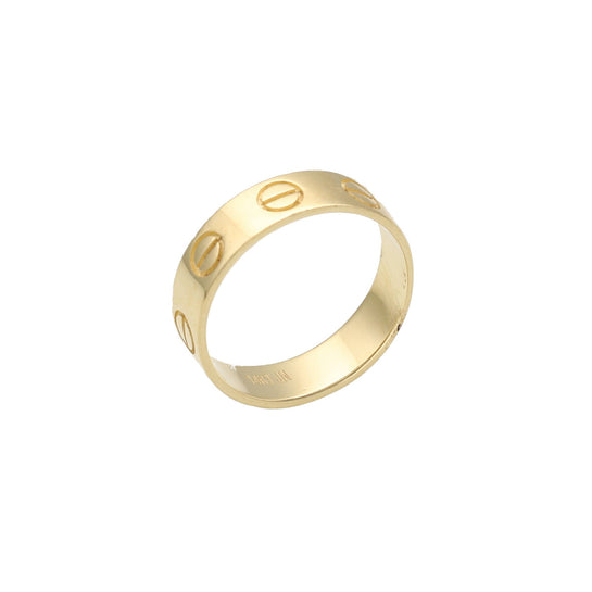 This 14 karat gold band combines timeless elegance with modern design. The screw head pattern adds visual interest while maintaining a classic appeal, making it ideal for gold engagement rings, wedding bands, or as a stackable ring to complement your existing jewelry.