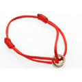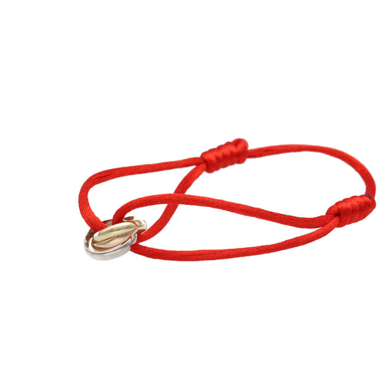 14K Gold Three Tone Macrame Bracelet - Adjustable Red Cord