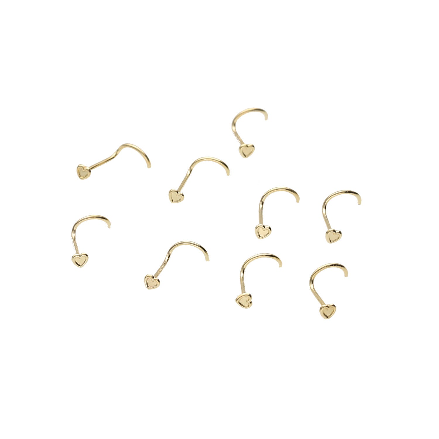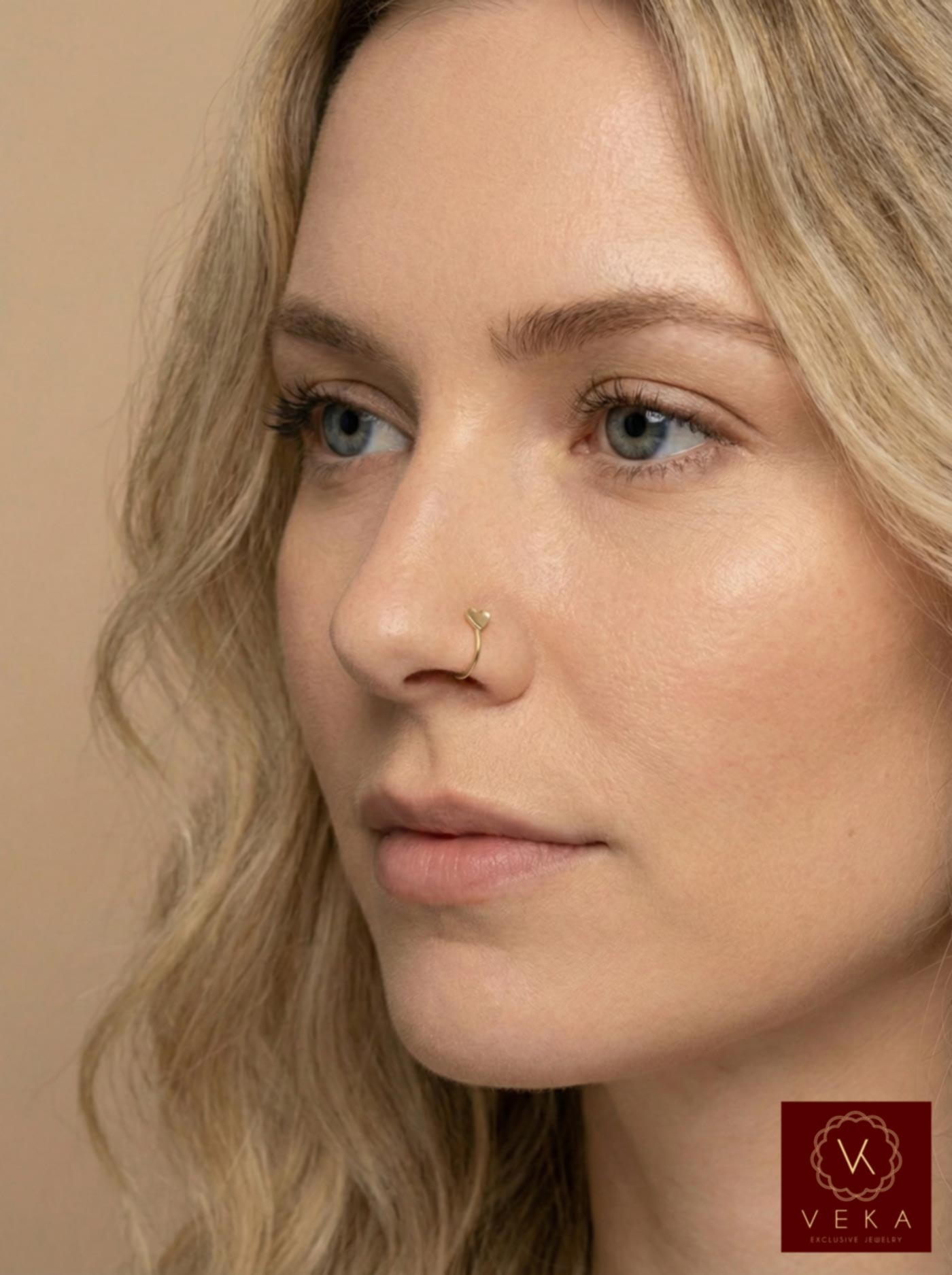 14k Gold Tiny Heart Open Nose Hoop - Dainty Nostril Ring | VEKA Jewelry