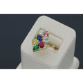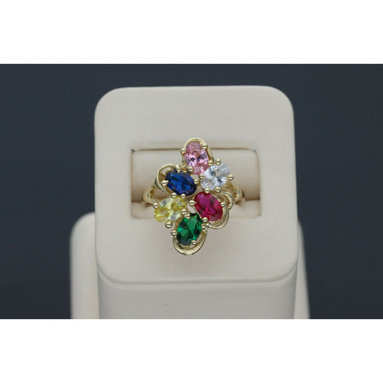 Experience the delicate beauty of this Graceful 14 Karat Gold Floral Multicolor ring, adorned with vibrant synthetic cubic zirconium stones. Crafted to capture the essence of 2025 jewelry trends, its floral design and multicolor sparkle add a sophisticated yet lively touch to any ensemble. Perfect for those seeking elegance with a modern twist, this ring enhances your look with lasting charm and color.
