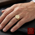 Men's 14K Yellow Gold Saint Michael Signet Ring - Pray For Us Medallion (5.7g)